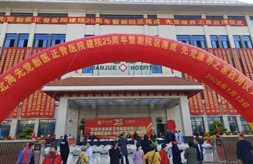 2026 年 1 月 13 日上午,北海先觉新医正骨医院建院25周年暨新院区落成、先觉康养之家启用仪式成功举行。各界嘉宾与院方人员齐聚现场,共同见证这家北海本土骨科专科医院开启医养融合发展的全新篇章。